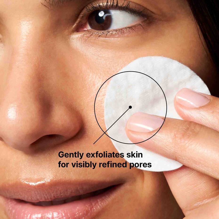 An exfoliating toner that helps balance pH to refresh skin and smooth skin texture while removing excess residue.